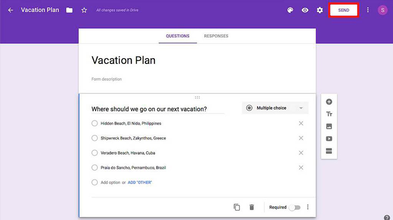 - Chia sẻ form của bạn bằng cách click send để chia sẻ nó với tài khoản email.