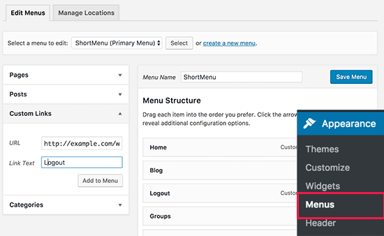 Cách thêm liên kết đăng xuất WordPress vào menu điều hướng