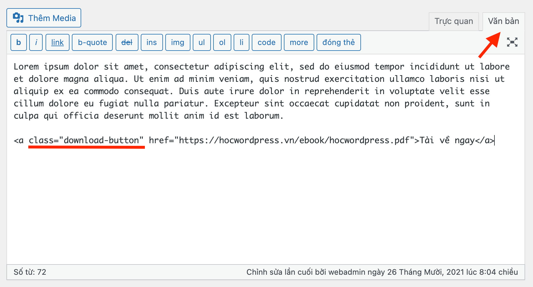 Cách tạo nút tải xuống trên trình soạn thảo WordPress
