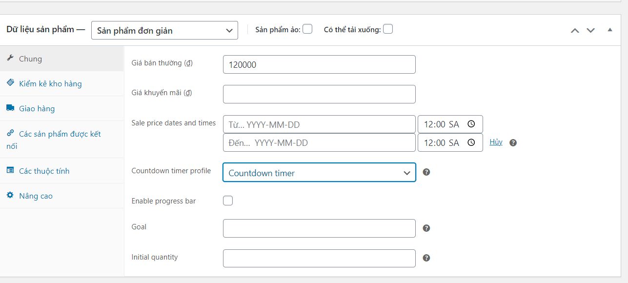 Tạo bộ đếm ngược sản phẩm WooCommerce WordPress