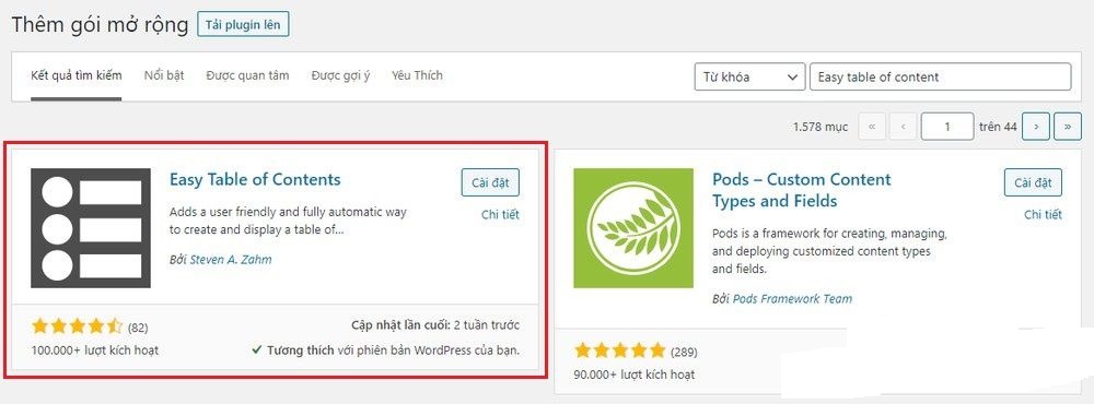 Đầu tiên, để tạo mục lục bạn cần cài đặt plugin hỗ trợ Easy Table of Contents.